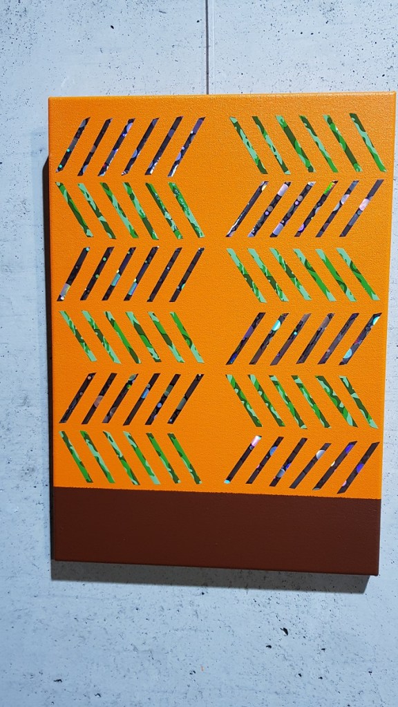Mixed-media if not aesthetically pleasing at first glance, gets a second wind upon knowing the story behind the piece, as if the prestige of an artist reflects favorably back onto the overall canvas, promoting further thought. Words on/as artwork does that for me, words spur my interest, which isn’t something I can say about all mixed-media. Fatu Feu’u imbued “Alofa mo ‘oe” with meaning, but it took written words to stop me long enough to engage with it, which all art should. ‘Come closer and have a moment with me,’ art should say. “Alofa mo ‘oe” just happens to say a little more —— I love you.